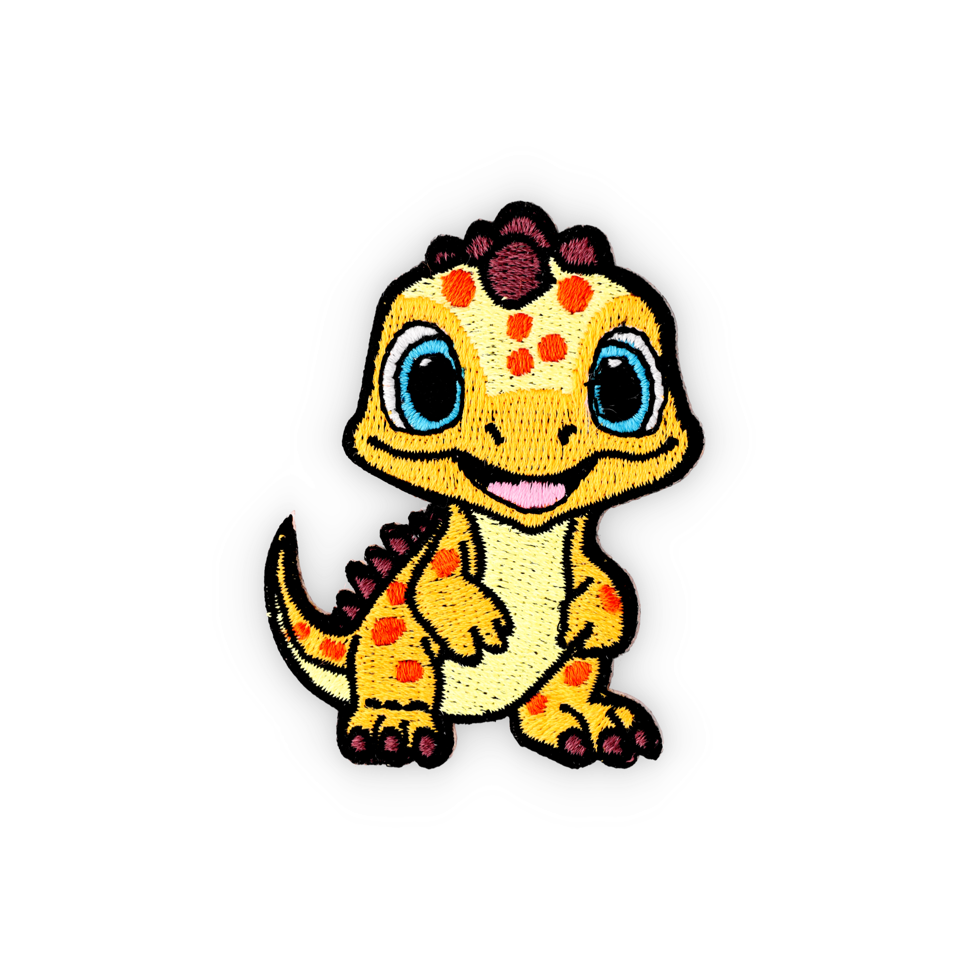 Dieser fröhliche Dino ist ideal, um Ihrem langweiligen T-Shirt neues Leben einzuhauchen. Mit seiner poppigen gelben Farbe fällt er sofort ins Auge und lässt Ihre Kleidung strahlen.