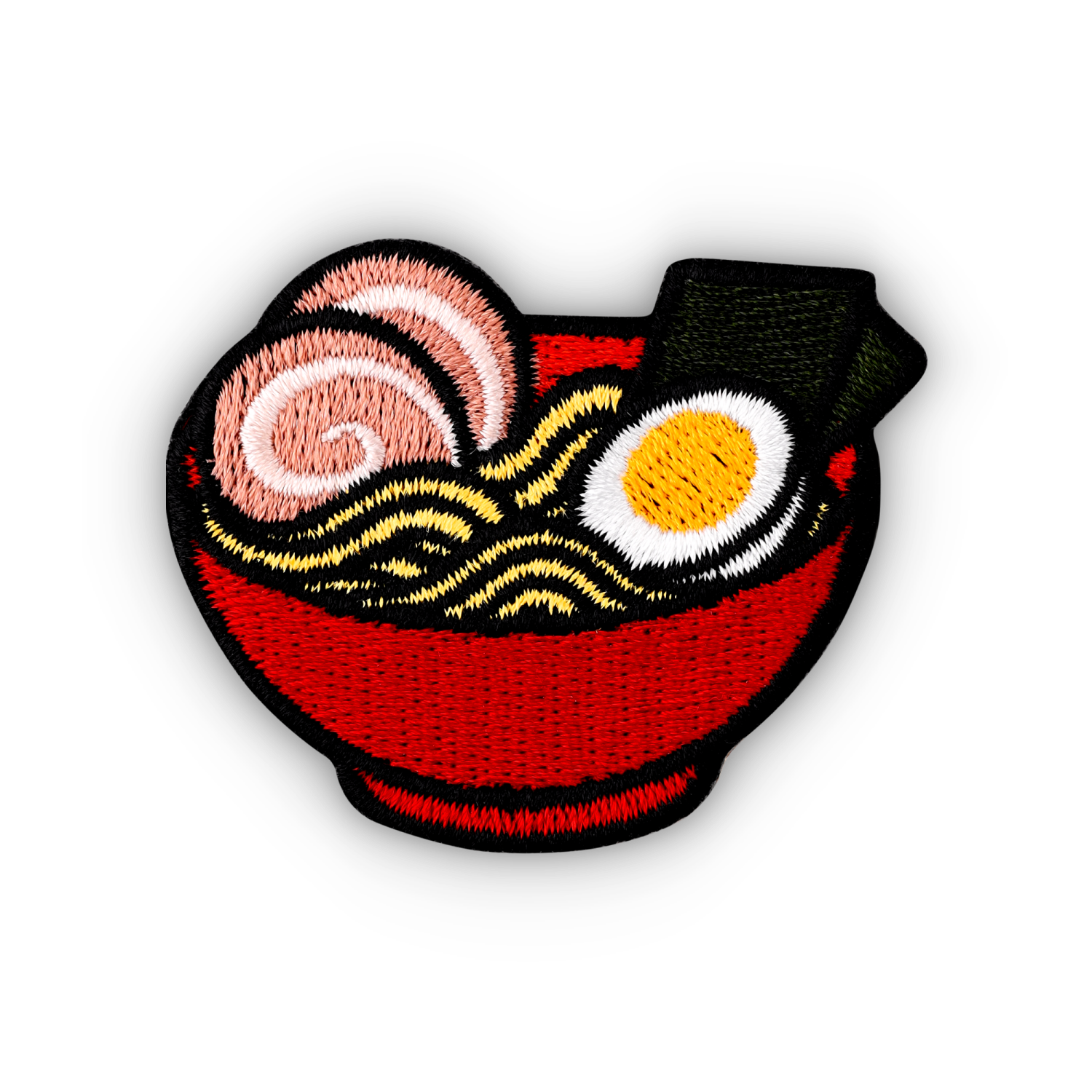 Een iconische ramen bowl als geborduurde badge, geïnspireerd op Japanse street food en popcultuur. Deze middelgrote badge (± 6 × 5 cm) springt meteen in het oog dankzij haar rijke kleuren en fijne borduurdetails — een echte conversation starter.